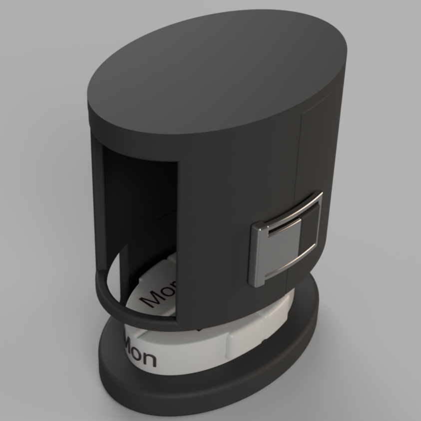 An original pillbox organizer designed to make it convenient to store medicine for the patient and caretaker.